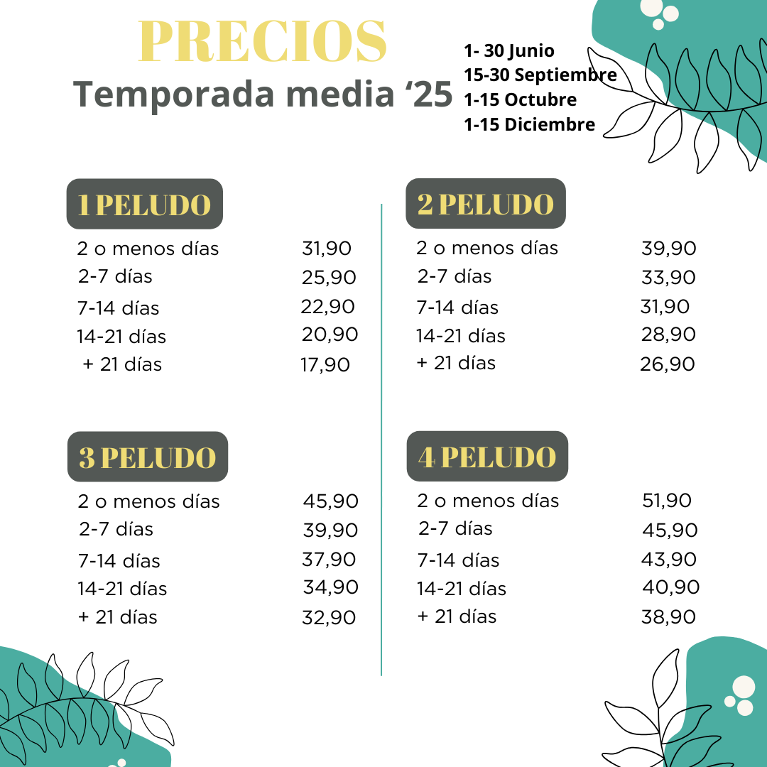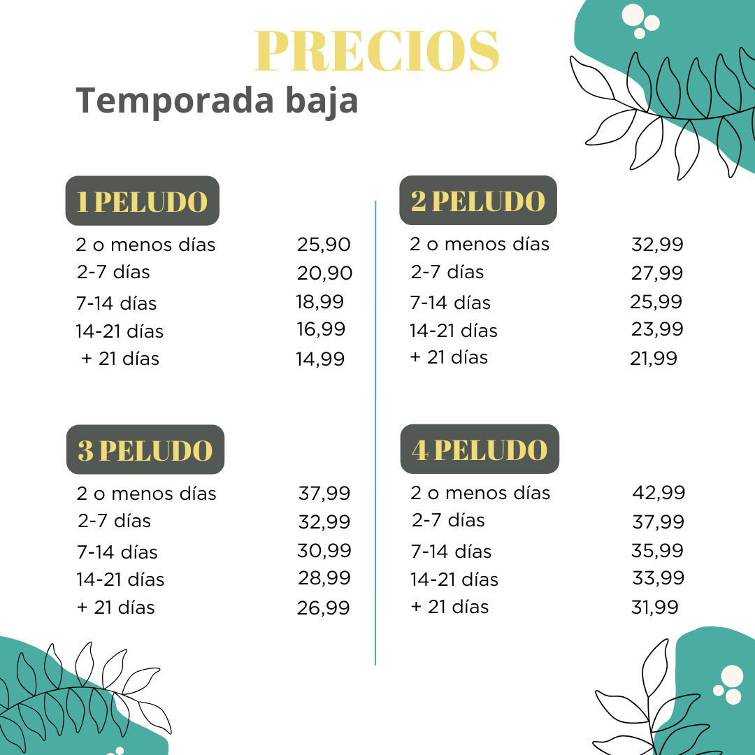 - En caso de PIENSOS MEDICADOS será necesario indicarlo a la entrada y traer la cantidad necesaria para su estancia